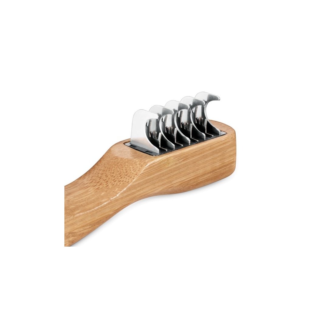 Artero Freddy z kolekce Nature je ručně vyráběný profesionální prořezávák pro psy a kočky, ideální k odstraňování extrémních uzlů, dredů a podsady. Je vybaven 5 háčkovými hroty s ostřím uvnitř a 4 zubatými hroty mezi nimi, které snadno rozdělují i pevně slepenou srst u kůže nebo v obtížně přístupných místech.