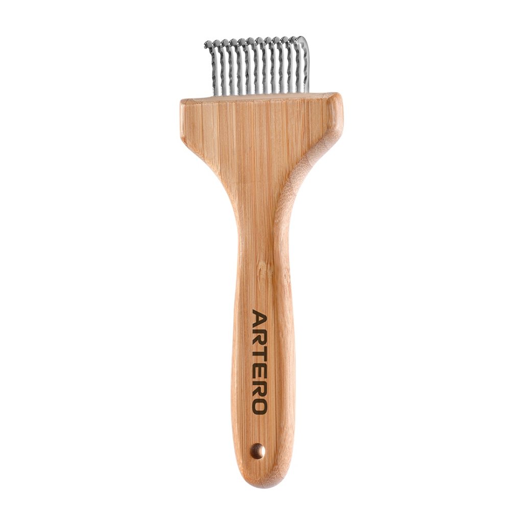 Artero Gus Ultracoat z kolekce Nature je profesionální nástroj určený k intenzivnímu odstraňování podsady a zacuchané srsti u psů. Je vybaven 12 zakřivenými hroty s vlnitým ostřím a zaoblenou špičkou, které umožňují efektivně vyčesat podsadu při línání i v extrémních případech plstnatění.