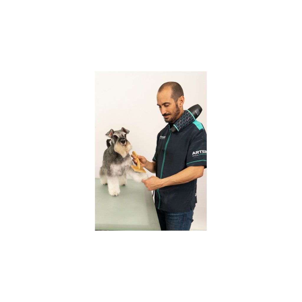 Tento fén je ideálním pomocníkem pro profesionální salony i domácí úpravu srsti, umožňuje rychlé vysušení a rovnání srsti, zatímco ruce zůstávají volné pro práci a kontrolu pohybu zvířete.