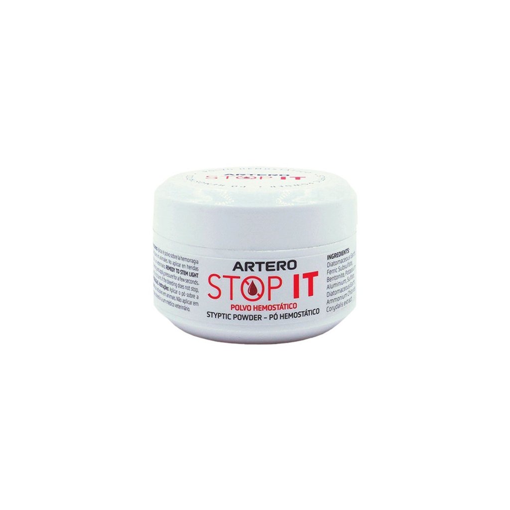 Artero Stop It je kosmetický prášek určený k péči o drápky psů, který se používá při úpravě drápků. Ideální pro domácí i profesionální použití při běžné kosmetické péči o tlapky.