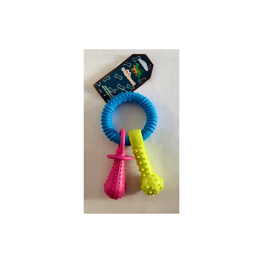 Gumová hračka pro psa ve tvaru chtastítka s rolničkou v dudlíku o velikosti cca 10cm.