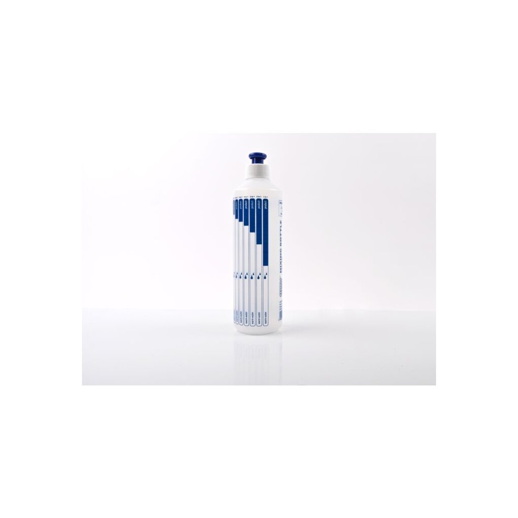 Nejprve odměřte požadované množství základní kapaliny, poté přidejte koncentrát dle doporučeného poměru výrobce. Láhev uzavřete a obsah důkladně protřepejte, aby došlo k rovnoměrnému promíchání.