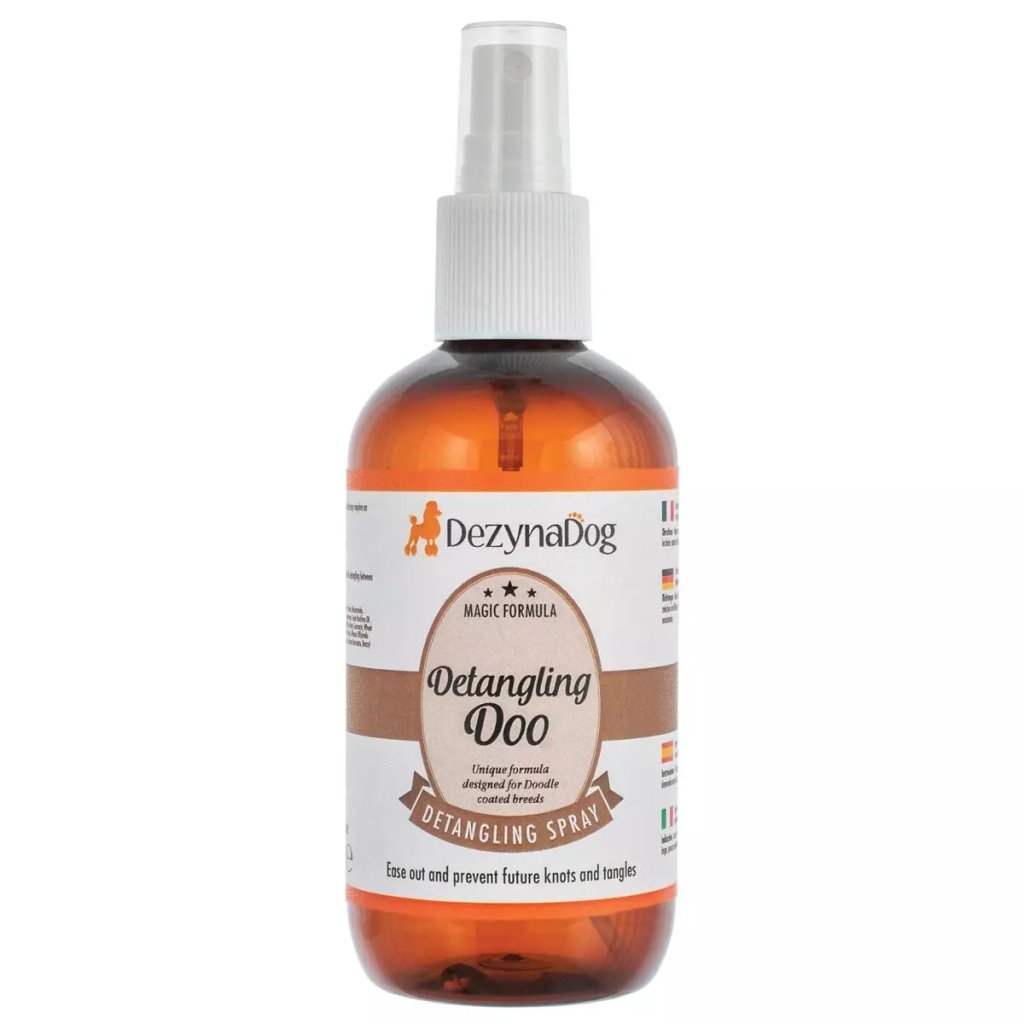 Společnost DezynaDog vyvinula jedinečný rozčesávací sprej pro srst pudlů, která vyžaduje zvláštní péči a pozornost. Tento rozčesávací sprej s lehkým složením zajistí, že srst nebude zatížena přípravkem, pomůže uvolnit uzly a zacuchání srsti a zajistí mnohem snadnější úpravu. Obsažený organický arganový olej pomáhá udržovat srst zdravou, hedvábnou a lesklou. Lze jej použít i mezi koupelemi, aby se snížila pravděpodobnost zacuchání.