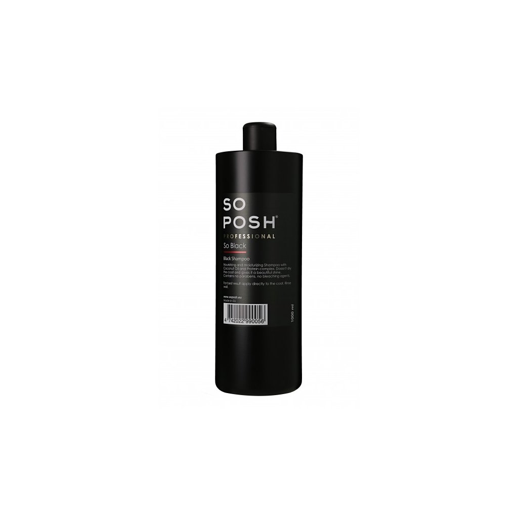 Šampon pro černou srst.Vyživující a hydratační šampon s kokosovým olejem a proteinovou složkou. Nevysušuje srst a dodává jí krásný lesk. V případě vícebarevných plemen se snažte vyhnout bílých oblastí v srsti, změní bílou srst na šedou.