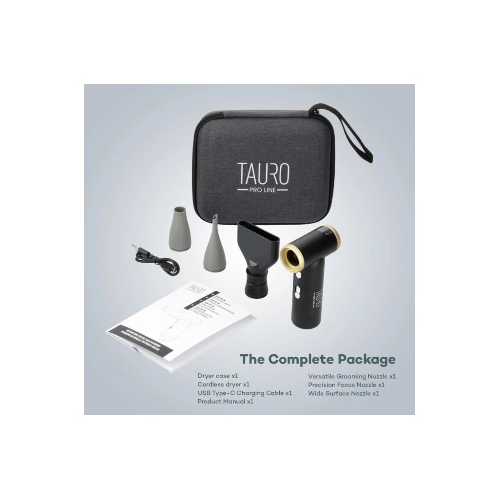Představujeme mini fén Tauro Pro Line – navržený tak, aby poskytoval účinné a pohodlné sušení při úpravě vašeho mazlíčka. Díky bezdrátovému designu, lehké konstrukci a super silné větrné síle nabízí bezkonkurenční pohodlí a výkon pro domácí i profesionální péči.