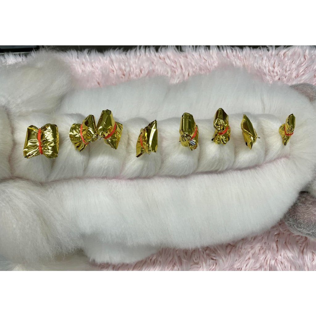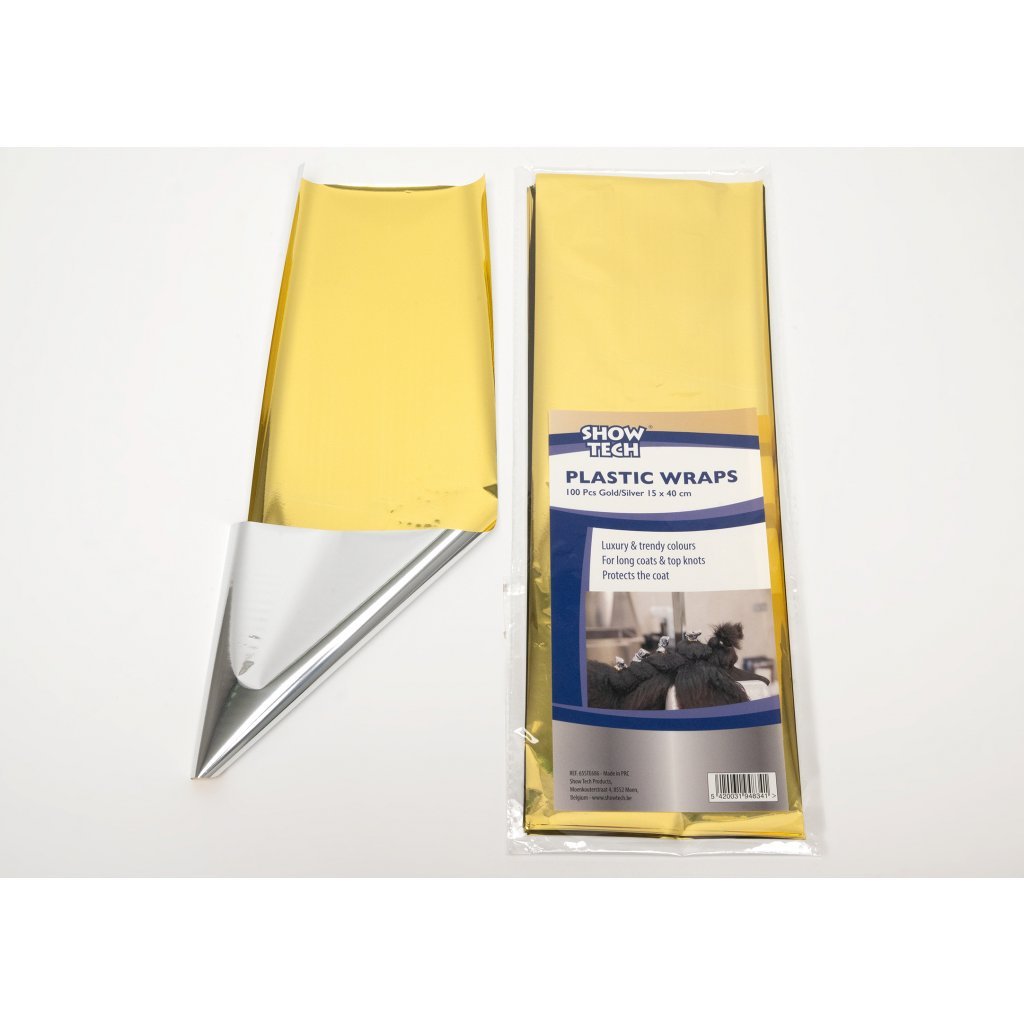 Ultra lehký plastový balíčkovací papír, omyvatelný a opakovaně použitelný! Prodává se v balení po 100 kusech (15 x 40 cm). Tento balíčkovací papír je jedinečný také díky svému 'pochromovanému' povrchu, který vytváří téměř zrdcadlové odrazy z jedné strany zlaté a z druhé stříbrné barvy. Vašemu mazlíčkovi se tak rázem promění 'obyčejná natáčka' v krásný módní doplněk.