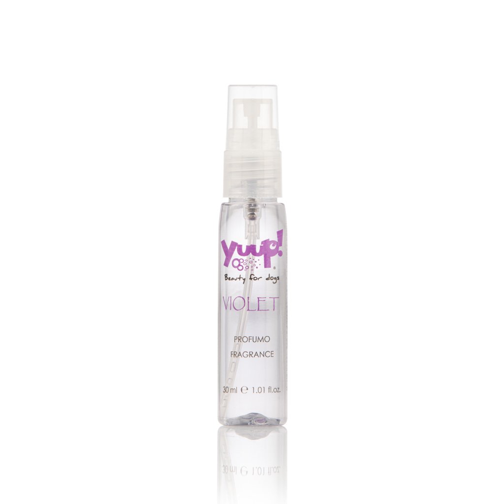 Vůně Yuup VIOLET 30ml Vůně pro psy a kočky s květinovými tóny růže, jasmínu, šeříku a bílého pižma. Návod k použití: Nastříkejte lehce na srst. Pouze pro vnější použití. Nepoužívejte v případě onemocnění kůže.